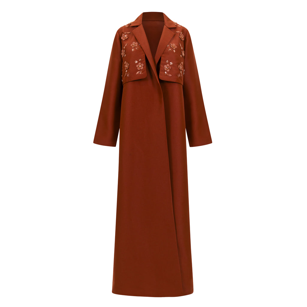 Description : Embroidered Trench coat with pleating at the back.