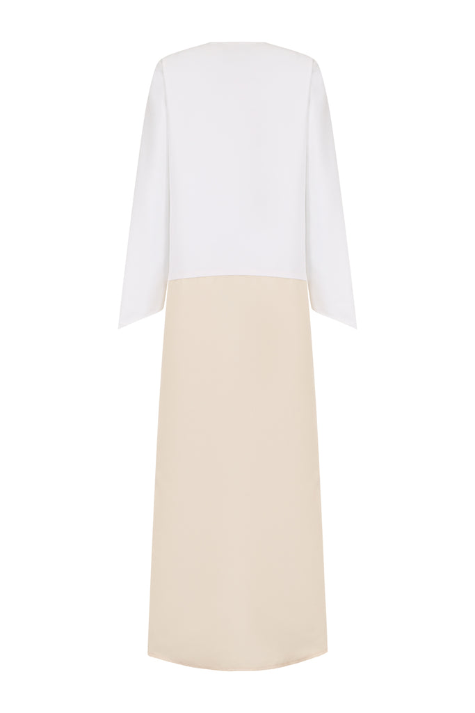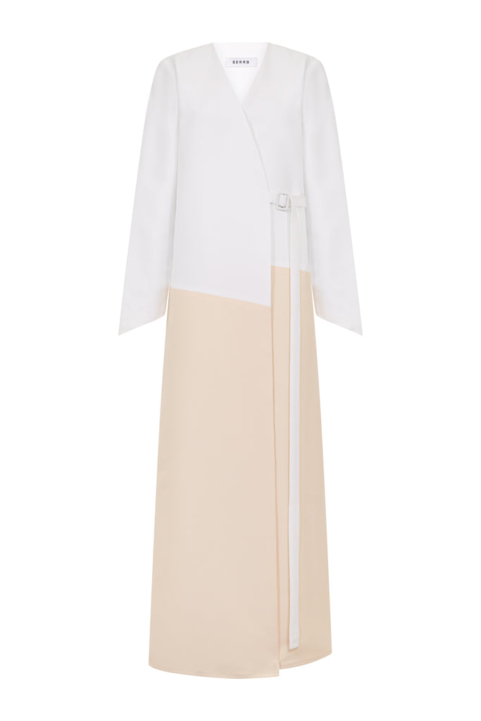 Description : Two-Toned abaya with side beltFabric composition : Bridal Satin