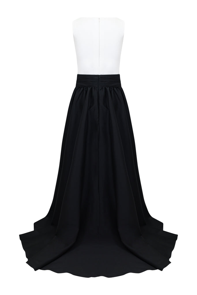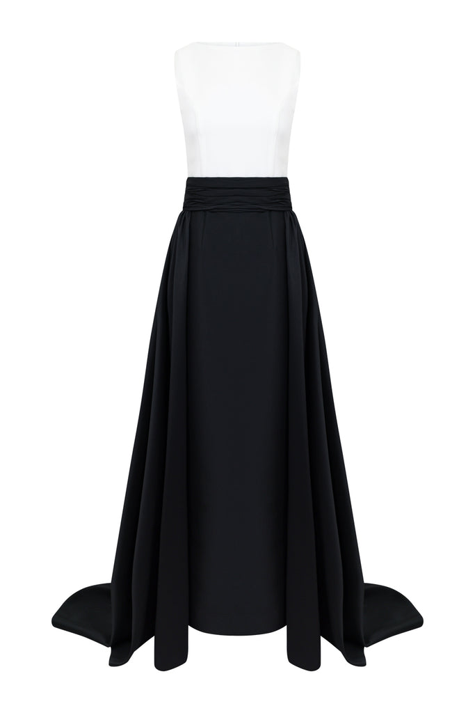 Description : Two-tone dress with detachable overskirtFabric composition : Bridal Satin