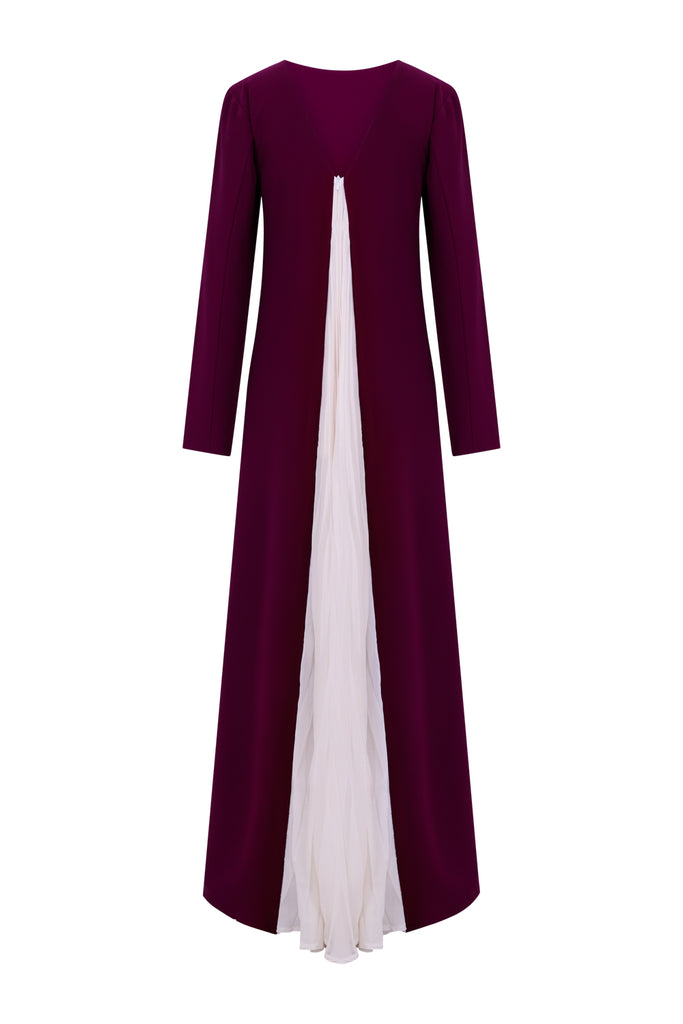 Description : Contrast pleated back dressFabric composition : Morrocon Crepe & Chiffon