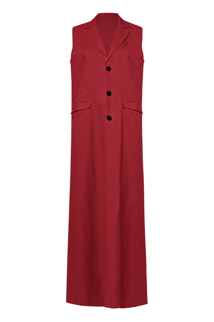 Description : Sleeveless buttoned down coat dress Fabric composition : Linen Product type : Casual wear